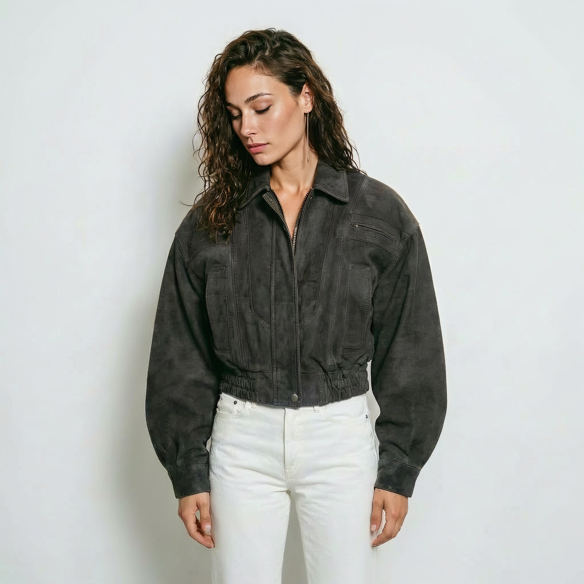 Укороченный Бомбер В сером цвете